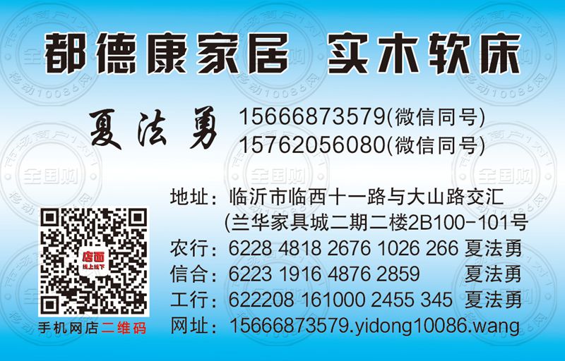 都德康家居实木软床名片-18968535237