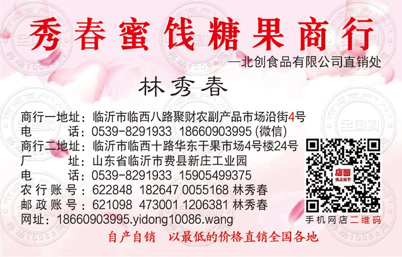临沂秀春果脯蜜饯商行名片-18660903995