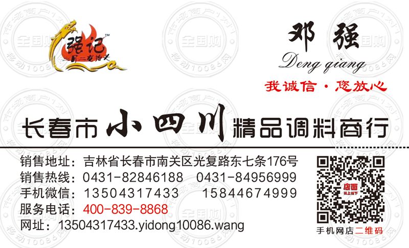 长春市小四川精品调料商行名片-13504317433