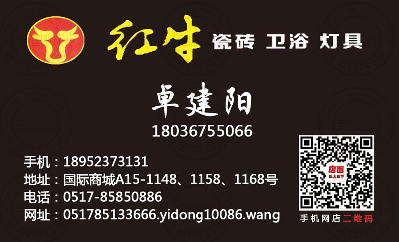 淮安红牛瓷砖卫浴灯具名片-18952373131