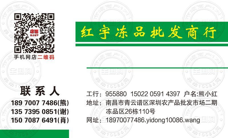 地址:南昌市青云谱区深圳农产品批发市场二期冻品区26栋110号