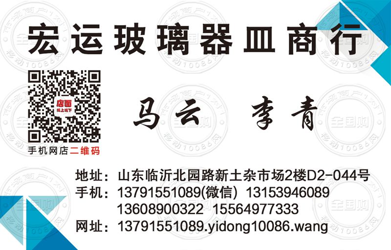 临沂宏运玻璃器皿商行名片-13153946089