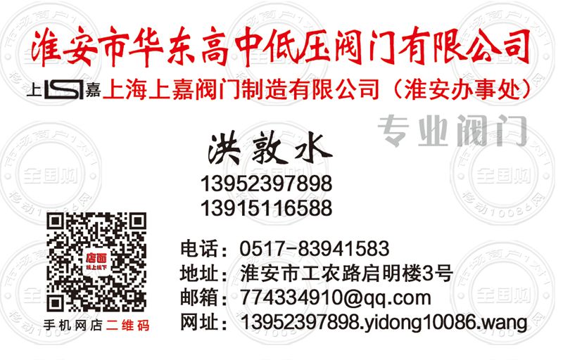 淮安市华东高中低压阀门有限公司名片-13915116588