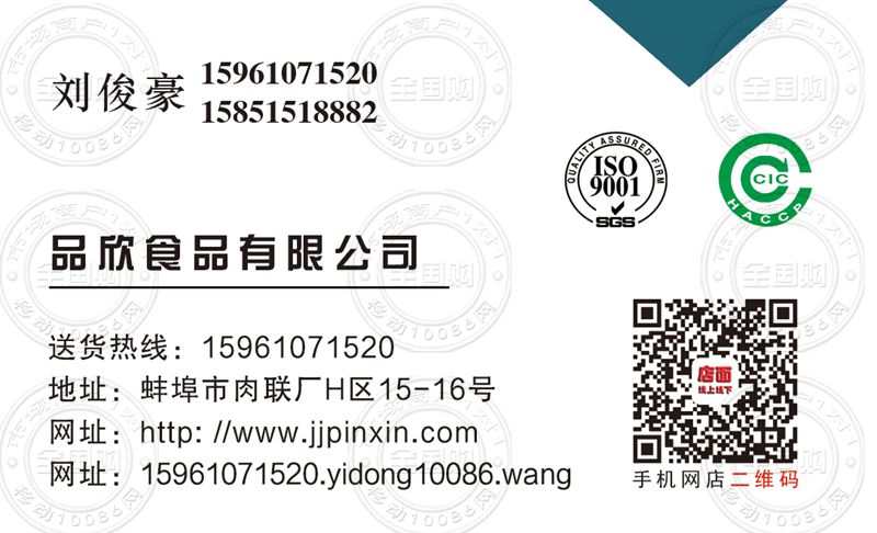 蚌埠品欣食品有限公司名片-15961071520