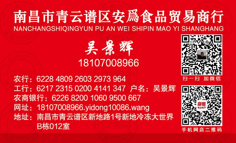 南昌市青云谱区安爲食品贸易商行名片-18107008966