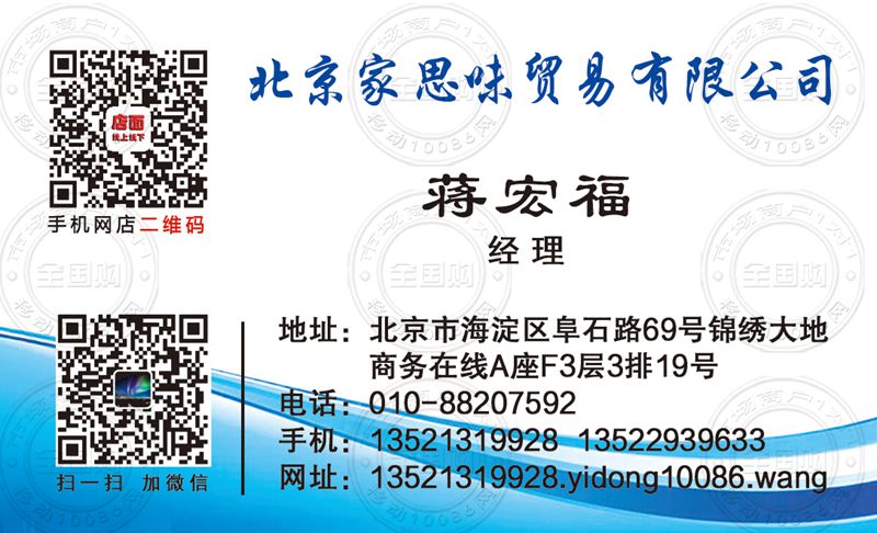 北京家思味贸易有限公司名片-13521319928