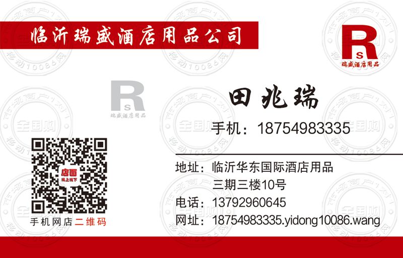 临沂瑞盛酒店用品公司名片-13792960645
