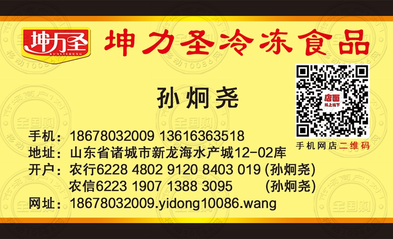 诸城坤力圣冷冻食品名片-13616363518