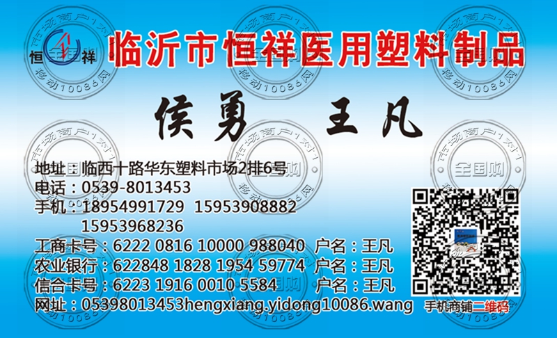 临沂市恒祥医用塑料制品直销处名片-18954991729