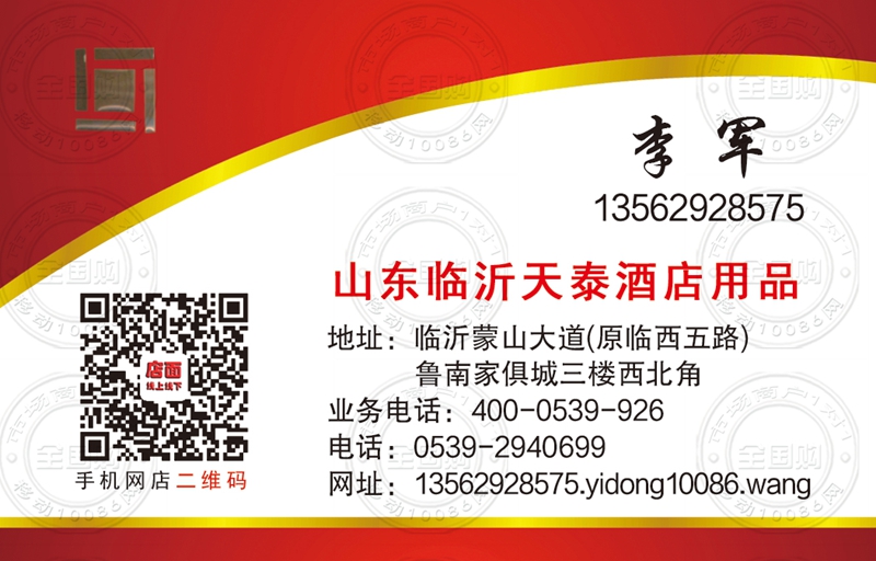 临沂天泰酒店用品 名片-13562928575