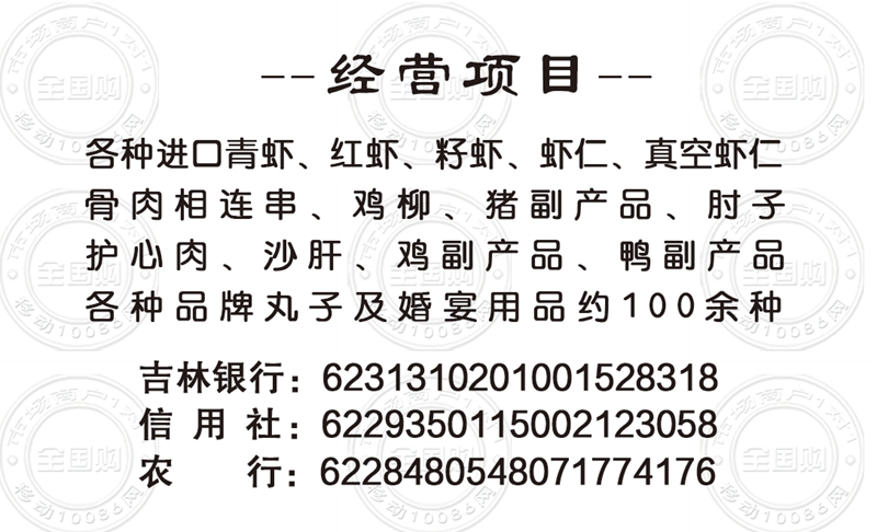 吉林会发海鲜速冻水产批发商店名片-13704412662