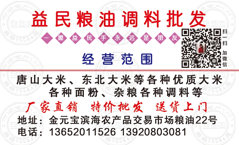 天津益民粮油调料批发名片-13920803081
