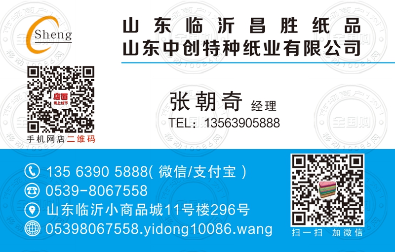 山东中创特种纸业有限公司名片-13563905888
