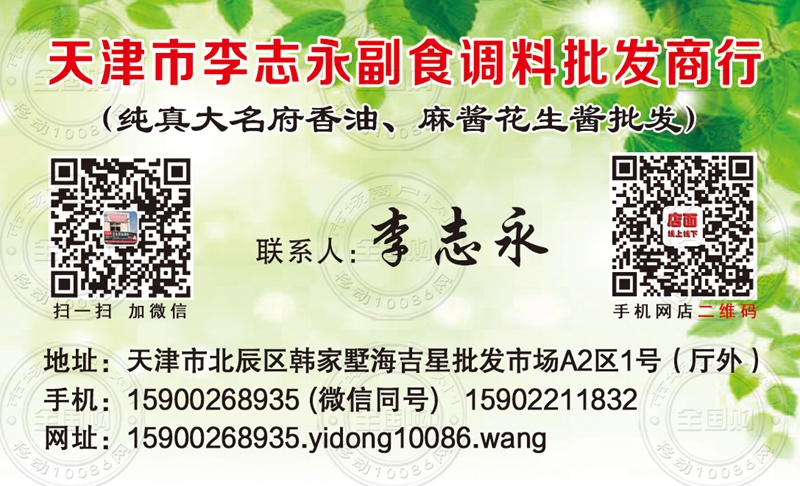 天津市李志永副食调料批发商行名片-15900268935