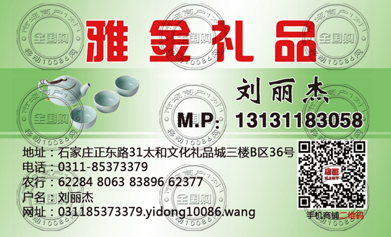 石家庄雅金礼品名片-13131183058