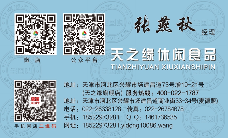 天津天之缘休闲食品名片-18522973281