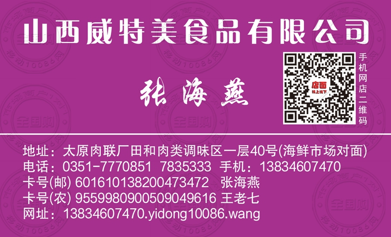 山西威特美食品有限公司名片-13834607470