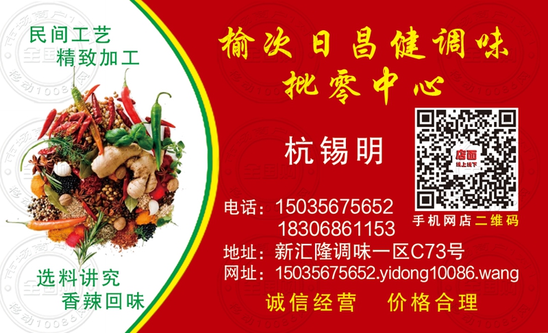 榆次日昌健调味批零中心名片-18306861153