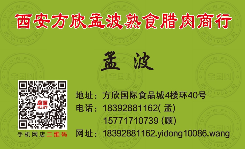 西安方欣孟波熟食腊肉商行名片-15902972577
