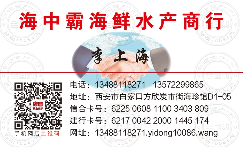 西安海中霸海鲜水产商行名片-13572299865