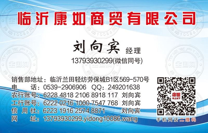 临沂康如商贸有限公司名片-13793930299