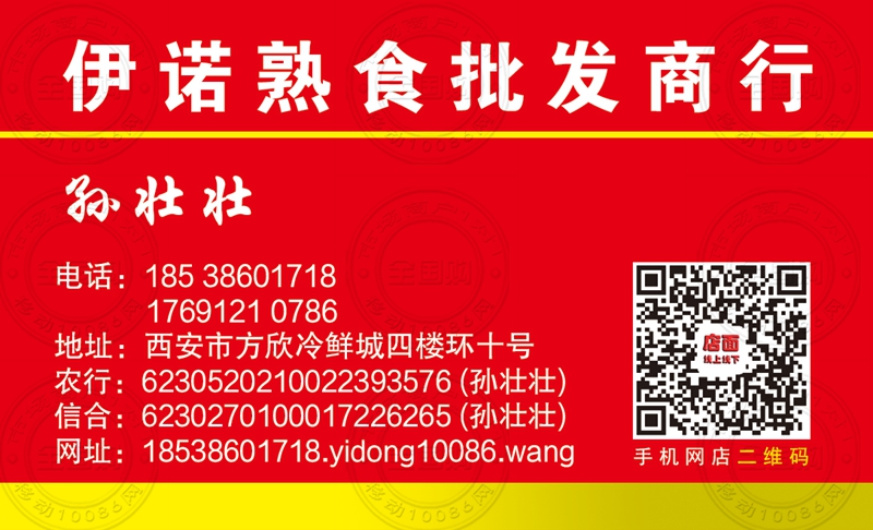 西安伊诺熟食批发商行名片-17691210786