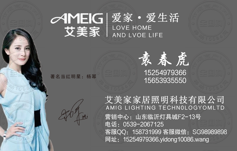 艾美家家居照明科技有限公司名片-15254979366