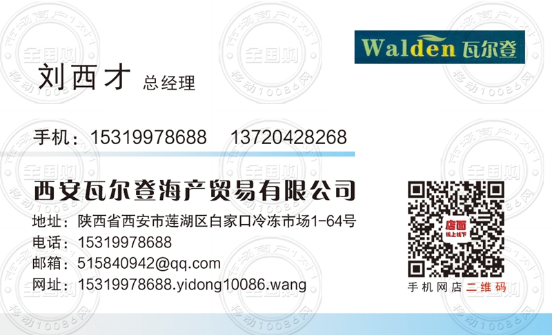 西安瓦尔登海产贸易有限公司名片-13720428268