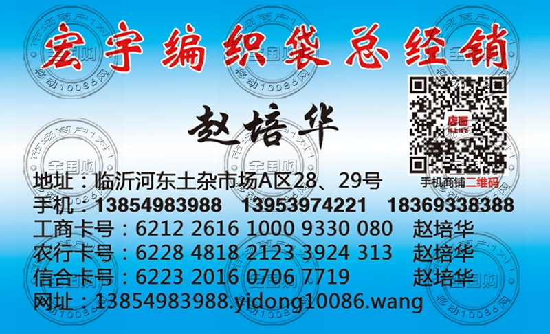 临沂宏宇编织袋总经销名片-13953974221