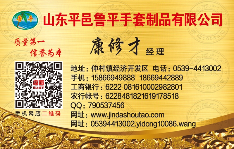 山东平邑鲁平手套制品有限公司名片-15866949888