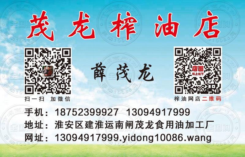 淮安茂龙榨油店名片-18752399927