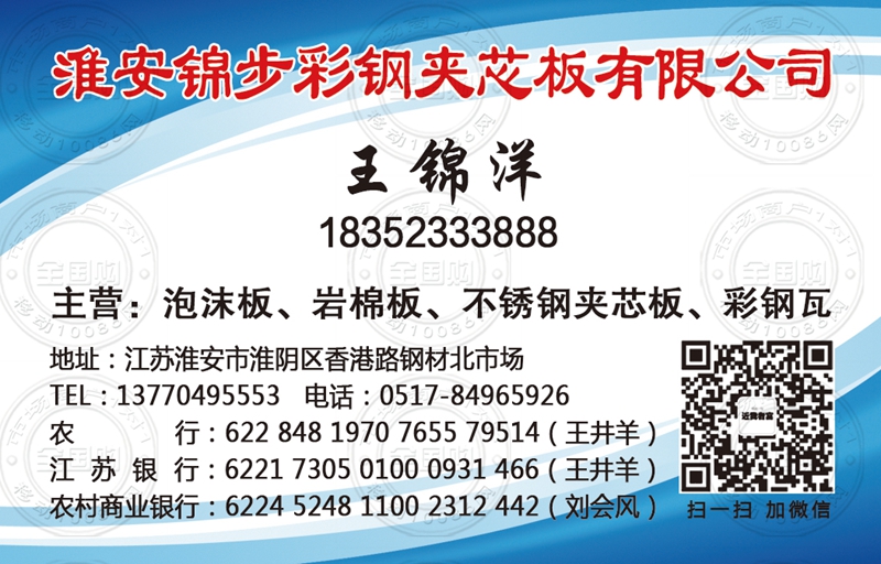 地址:江苏淮安市淮阴区香港路钢材北市场