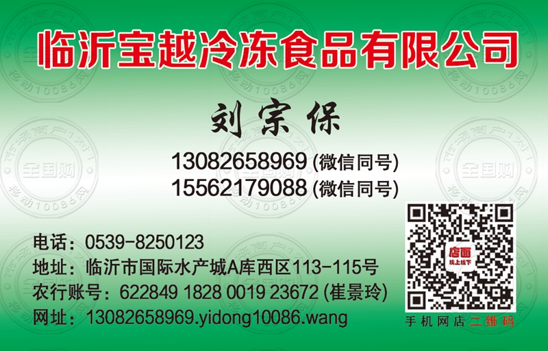 临沂宝越冷冻食品有限公司名片-13082658969
