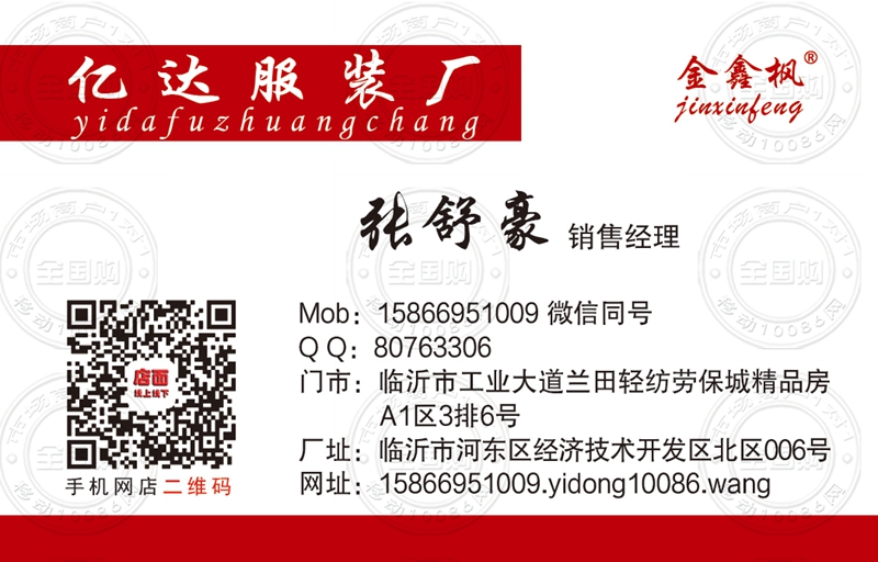 临沂亿达服装厂名片-15866951009