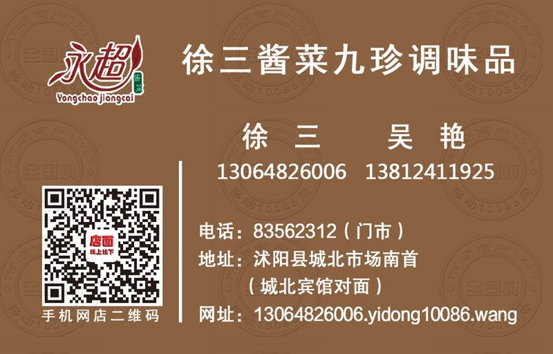 徐三酱菜九珍调味品名片-13812411925