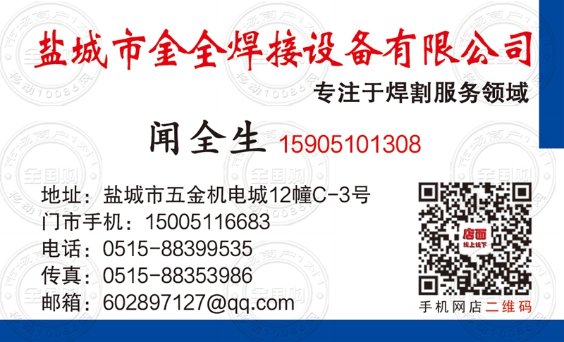 盐城市金全焊接设备有限公司名片-15905101308