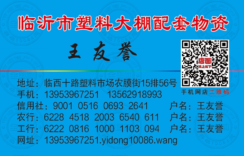 地址:临西十路塑料市场农膜街15排56号