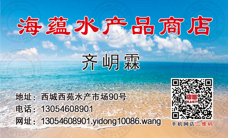 东营海蕴水产品商店名片-13054608901