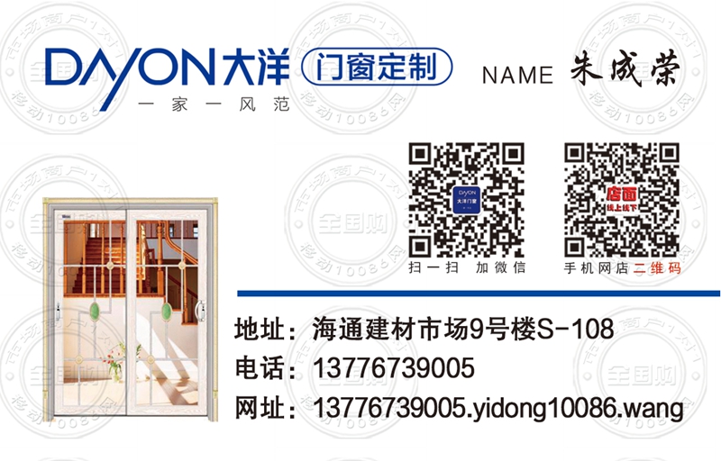 大洋门窗定制名片-13776739005