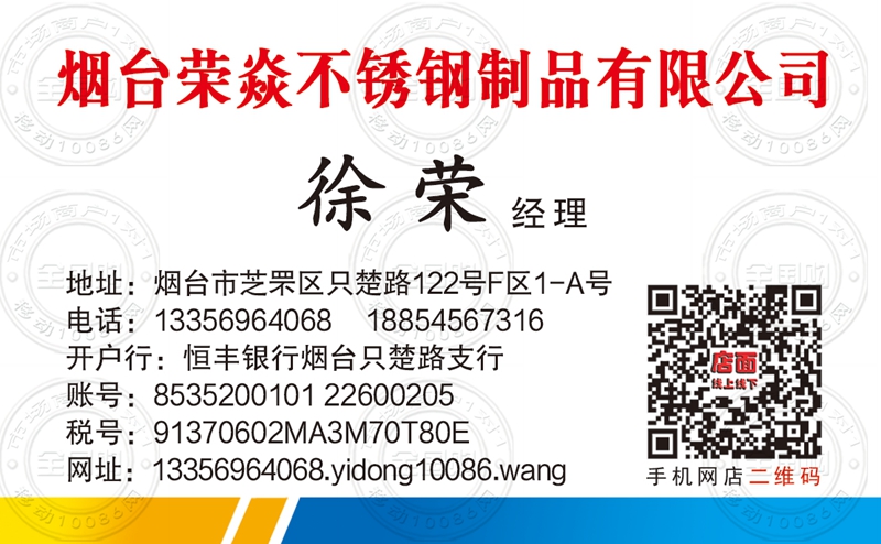 烟台荣焱不锈钢制品有限公司名片-18854567316