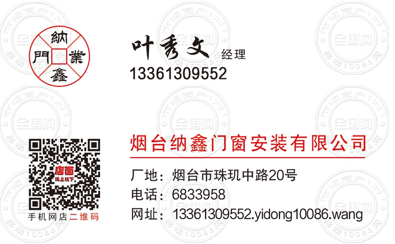 烟台纳鑫门窗安装有限公司名片-13361309552