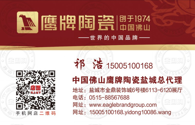 鹰牌陶瓷盐城总代理名片-15005100168