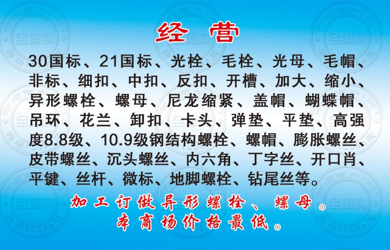 九曲五金商场标准件批发部