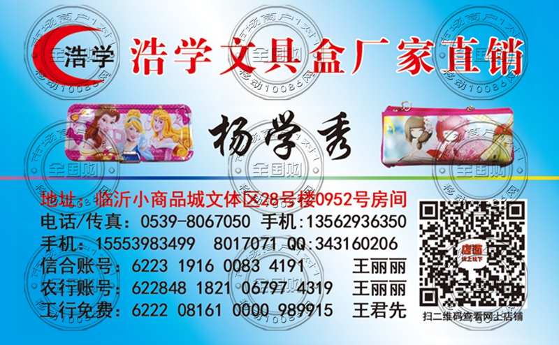 临沂浩学科学文具盒总经销名片-13001579568
