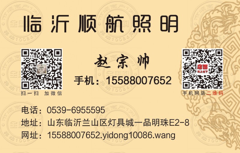 地址:山东临沂兰山区灯具城一品明珠E2-8