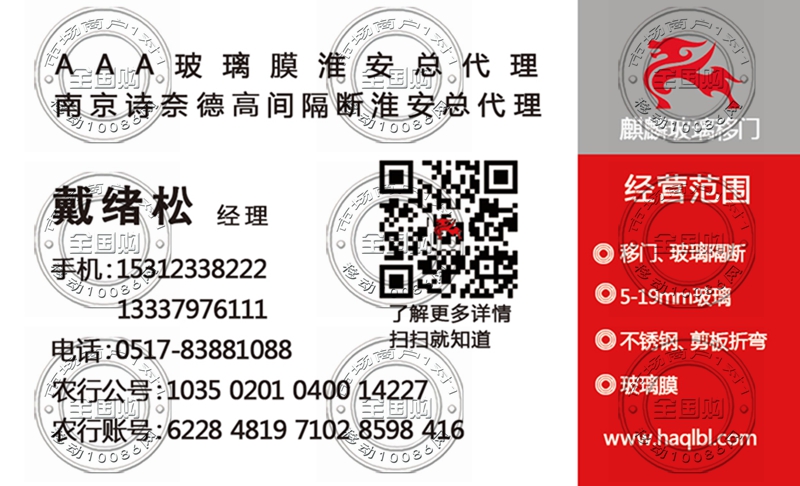 淮安麒麟玻璃移门名片-13337976111