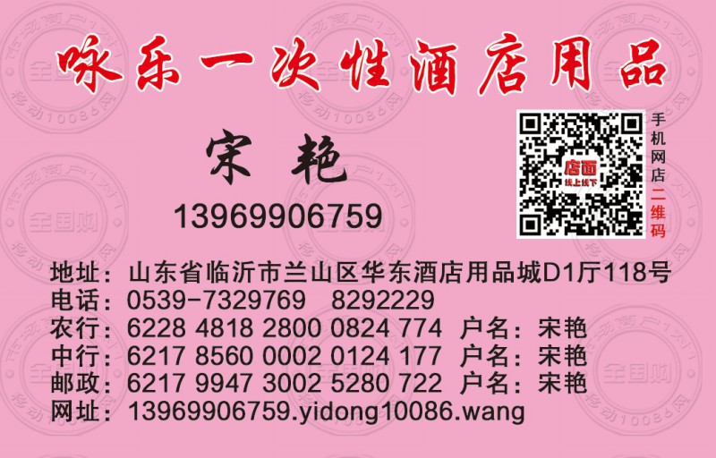 临沂咏乐一次性酒店用品名片-13969906759