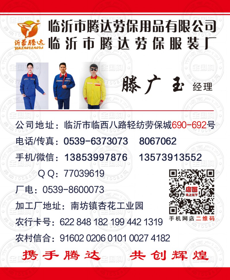 临沂市腾达劳保用品有限公司名片-13853997876