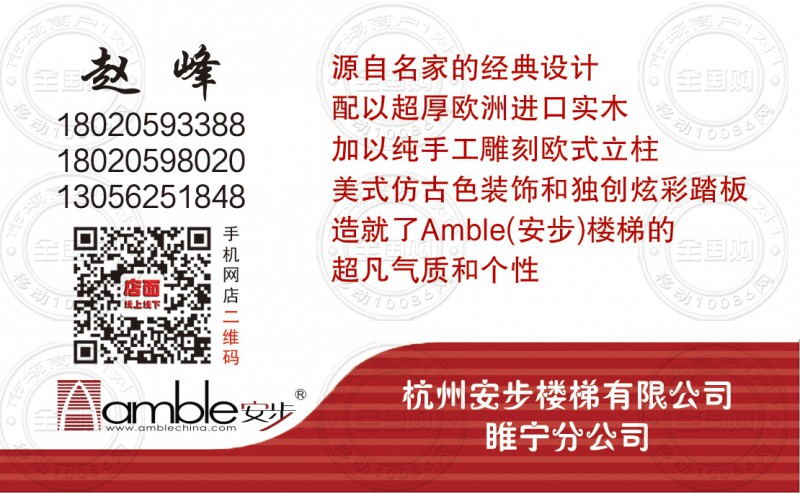 杭州安步楼梯有限公司睢宁分公司名片-18020598020