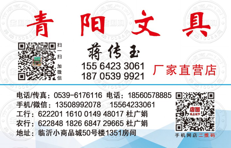 青阳文具厂家直营店名片-15564233061